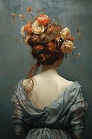 Dit schilderij toont een jonge vrouw met een bloemenkroon op haar hoofd.