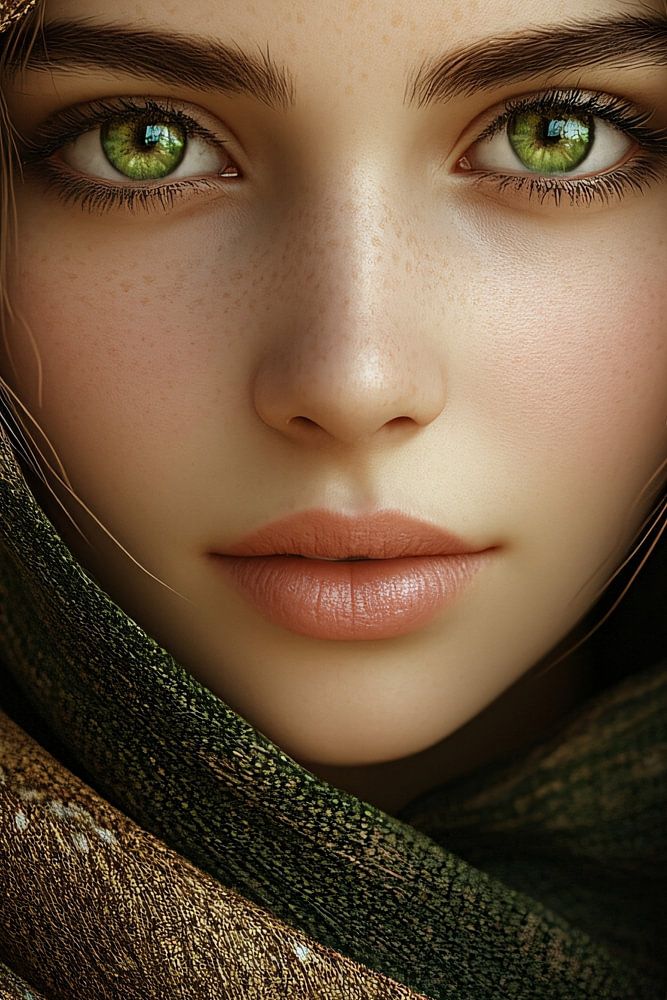 Dit prachtige portret toont een jonge vrouw omhuld in een elegant gewaad, haar groene ogen helder en expressief. Een bloemenkrans van witte bloesems siert haar hoofd, wat een vleugje natuurlijke schoonheid en verfijning toevoegt. De zachte kleuren van haar kleding en de bloemen contrasteren subtiel met haar levendige blik, waardoor dit beeld zowel rustgevend als krachtig is. Het ontwerp straalt tijdloze elegantie uit en zou prachtig passen in verschillende ruimtes, zoals een woonkamer of slaapkamer, waar het een gevoel van sereniteit en mysterie kan oproepen.