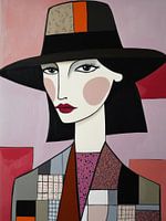 Koop dit abstracte kunstwerk Vrouw met de hoed van Franka Poulain op canvas, aluminium dibond, (ingelijste) fotoprint, behang en ArtFrame, op maat geprint in Fine-Art kwaliteit.