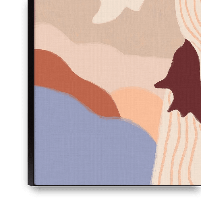 Jouw gekozen kunst als print op doek, gespannen in een aluminium frame. Snel en eenvoudig te verwisselen voor een frisse uitstraling, helemaal zoals jij het wilt.