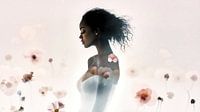 Deze romantische en sensuele illustratie toont een jonge vrouw met gesloten ogen, omringd door een veelheid aan kleurrijke bloemen. Haar kalme verschijning straalt puurheid en onschuld uit, terwijl de levendige bloemen een sfeer van zachtheid en schoonheid creëren. De zachte kleuren en de fijne details van de bloemen benadrukken de harmonie tussen mens en natuur. Het schilderij nodigt de kijker uit om zich onder te dompelen in een wereld van vrede en innerlijke rust, waar de sensualiteit van de natuur samensmelt met de stille elegantie van de vrouw. Het symboliseert liefde, groei en de schoonheid van eenvoudige dingen.