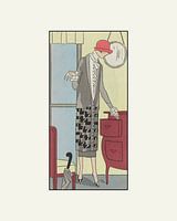 Een historische mode prent in een modern jasje: “faux”. Geïnspireerd door de Art Deco, een stijlbeweging die opkwam in de jaren twintig van de vorige eeuw. Nieuw zakelijkheid gemengd met moderne strakke lijnen en kleuren.