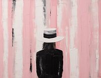 Vrouw met hoed voor roze achtergrond