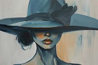 Dit sfeervolle werk toont een vrouw en profil, elegant gekleed met een opvallende hoed die haar gezicht deels in mysterie hult. De kunstenaar heeft gebruik gemaakt van een warm kleurenpalet waarin tinten als okergeel, diepbruin en zachtroze de boventoon voeren, wat het werk een intieme en enigszins nostalgische sfeer geeft. De penseelstreken zijn zichtbaar en dragen bij aan de textuur en levendigheid van het portret. Het spel van licht en schaduw accentueert de contouren van haar gezicht en de plooien in haar kleding, waardoor een gevoel van diepte en realisme ontstaat. Dit werk straalt een tijdloze elegantie en een ingetogen zelfverzekerdheid uit, en zou een prachtige aanwinst zijn voor een klassiek of modern interieur.