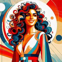 Een heerlijke vrolijke frisse uitstraling van deze jonge vrouw met een grote bos krullen.
