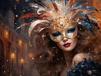 Droomvrouw. mooi. Vrouw. Venetië. masker. carnaval. blond haar. vuurwerk. Muur Kunst. Digitale Muur Kunst. Digitale Deco Muur Kunst. Home Decor. Kleuren.