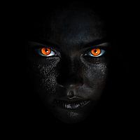 Met prachtige kleurtinten, zwarte achtergrond, en een uniek en exclusief ontwerp maakt dit tot een stijlvolle fotoprint die prachtig staat in elke ruimte. De diepe zwarte achtergrond laat de levendige kleuren extra sterk naar voren komen, terwijl de combinatie van warme oranjetinten, subtiele huidkleuren en gedurfde contrasten een spannend geheel vormen. De ogen vormen niet alleen het centrale punt, maar geven het portret ook een zielvolle, expressieve kracht.