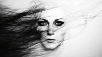 Deze artistieke zwart-wit illustratie toont een vrouw met donker haar dat zachtjes rond haar gezicht vloeit en een aura van mysterie en intrige creëert. De contrasten tussen licht en schaduw voegen diepte toe aan de compositie en benadrukken de delicate gelaatstrekken. Het vloeiende haar omlijst haar gelaatstrekken en versterkt het dramatische effect van de scène. Het gereduceerde kleurenpalet laat de details eruit springen en versterkt de emotionele impact van de afbeelding. Deze illustratie nodigt de kijker uit om zich in te leven in de gedachten en gevoelens van de afgebeelde figuur, terwijl het mysterieuze en onbekende wordt gesymboliseerd. Ideaal voor kunstliefhebbers die geïnteresseerd zijn in diepgaande en emotionele afbeeldingen.