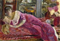 Koop dit portret Vrouw op een divan, Pierre Bonnard, 1907-1914 van Atelier Liesjes op canvas, aluminium dibond, (ingelijste) fotoprint, behang en ArtFrame, op maat geprint in Fine-Art kwaliteit.