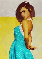 Dit heldere, mooie beeld van een jonge vrouw doet denken aan het lenteseizoen. We zien haar handen achter haar rug. We zien een wetende, speelse uitdrukking op haar gezicht. Dit is iets dat ons kan dwingen te herinneren hoe het was om jong te zijn. Het is heel goed…