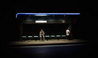 Deze foto heb ik gemaakt voor de serie night photography in Bangkok. Ik liep voorbij deze bushalte en zag twee mensen in de bushalte zitten. Wachtend op de bus. De vrouw zit wat op haar telefoon te kijken en de man die zijwaarts zit heeft zijn telefoon aan de oplader. Het is een sereen beeld van twee mensen die rustig wachten in een van de drukste steden in de wereld.