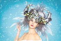 Het portret van Vrouwe Winter is het laatste werk uit de serie van vier. Het werk toont ons een vrouw met een hoofdtooi die ons doet denken aan de winter. De lichtblauwe achtergrond symboliseert de koude winterlucht en de sneeuw. Het werk is zeer gedetailleerd en biedt de kijker veel om te ontdekken. De sneeuw en mist in de achtergrond dragen bij aan de koude en serene sfeer van het werk. Vrouwe Winter straalt een zekere sereniteit en rust uit, een gevoel dat vaak geassocieerd wordt met dit seizoen. Dit werk zal een mooie toevoeging zijn aan uw interieur en herinnert ons eraan om te genieten van de schoonheid van de winter, zelfs op de koudste dagen.