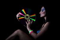 Model - Vrouwelijke model met een album in handen,de manier waarop het licht op de plaat viel zorgde ervoor dat de verkleuringen in het album zichtbaar werden.