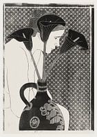 Koop de illustratie Vrouwelijk naakt achter vaas met aronskelken, Samuel Jessurun de Mesquita (1912) van Atelier Liesjes op canvas, aluminium dibond, (ingelijste) fotoprint, behang en ArtFrame, op maat geprint in Fine-Art kwaliteit.