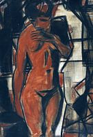 In Stehender weiblicher Akt staat een vrouw naakt op het portret. Het naaktportret laat de meid in bruine tinten zien met haar benen en heupen bloot. Tevens zijn van het naaktmodel de buik, torso en borsten ontbloot.