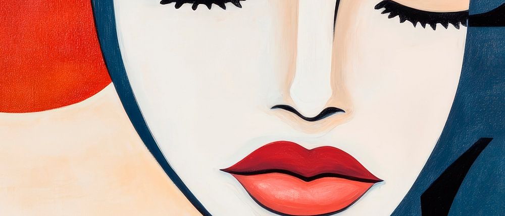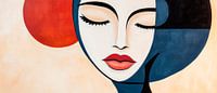 Een harmonieus kleurenspel, de zachte trekken van een gestileerde vrouw en een speels minimalisme fascineren de kijker. De levendige rode en diepblauwe kleurtonen stralen rust en elegantie uit. Perfect voor de slaapkamer of een gezellige woonruimte, waar het een sfeer van sereniteit en inspiratie creëert.