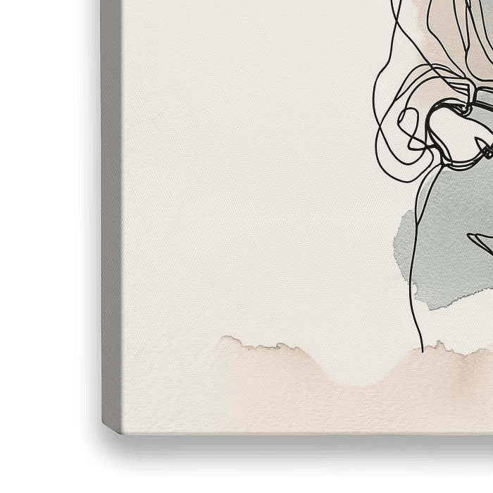 Dit schilderij straalt een subtiele elegantie uit, waarbij de kunst van het weglaten centraal staat. Het werk bestaat uit een samenspel van zachte waterverftinten en expressieve lijnen die samen een vrouwfiguur in een modieuze outfit vormen. De waterverf creëert een warme en uitnodigende achtergrond, terwijl de zwarte inktlijnen met een losse hand zijn getekend, wat de afbeelding een gevoel van beweging en spontaniteit geeft. De kleding van de figuur is met een paar welgeplaatste lijnen neergezet, waardoor de suggestie van een stijlvolle blazer en een delicate kanten top ontstaat. Het ontbreken van gedetailleerde gezichtskenmerken trekt de aandacht naar de kleding en de houding van de figuur, waardoor de toeschouwer wordt uitgenodigd om zich te concentreren op de vorm en stijl in plaats van de identiteit. Dit kunstwerk is een ode aan de moderne mode, met een knipoog naar de klassieke mode-illustratie.