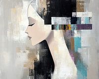Details: vrouw, portret, abstract, geometrisch, aardetinten, pastel, modern, kunst, sereniteit, harmonie