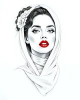 In dit fascinerende beeld is een dame afgebeeld in een opvallende zwart-witstijl die de tijdloze elegantie en krachtige aanwezigheid van de figuur benadrukt. Haar gezicht is perfect geproportioneerd, met een duidelijke, expressieve oogopslag die de kijker direct aankijkt. Het monochrome kleurenpalet benadrukt de contouren en vormen van…