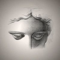Een romantisch portret van een vrouw met een moderne, lieve uitstraling, dat doet denken aan de tijdloze klassiekers uit de kunstgeschiedenis, allemaal monochroom in grijs - Geef uw muren kunst en maak er een echt thuis van.