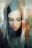Details: vrouw, portret, serene, abstract, kleurrijk, emotie, diepte, gesloten ogen, jonge vrouw, modern