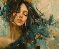 Koop dit portret Vrouwen Schilderij | Serene Depth van Kunst Kriebels als print op canvas, aluminium dibond, (ingelijste) fotoprint, behang en ArtFrame. Voor jou op maat geprint in Fine-Art kwaliteit.