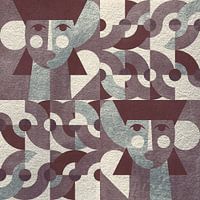 Semi abstract portret van twee vrouwen en geometrische vormen in zilver en warm grijs.