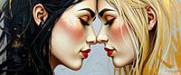 Vrouwen verenigd in liefde - het zwevende moment voor de kus, een stille ode aan tederheid, toewijding en de universele kracht van liefde van AidasignArt