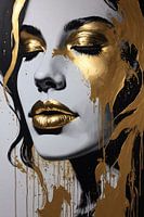 Ontdek de ultieme fusie van luxe en kunst met dit prachtige ontwerp, waar de tijdloze schoonheid van Art Deco stijl samenkomt met een moderne esthetiek. Dit kunstwerk straalt een onmiskenbare rijkdom uit, gevangen in het schitterende goud dat over het canvas lijkt te vloeien en de contouren van een vrouwengezicht accentueert. De diepte in de zwarte en witte tinten voegt een dramatische toon toe die de aandacht trekt en vasthoudt. Een statement piece dat even krachtig als elegant is, perfect voor diegene die hun interieur een vleugje glamour en verfijning willen geven. Dit schilderij is niet alleen een visueel genot maar ook een gesprekstarter die een rijke sfeer creëert in elke kamer waar het wordt tentoongesteld.