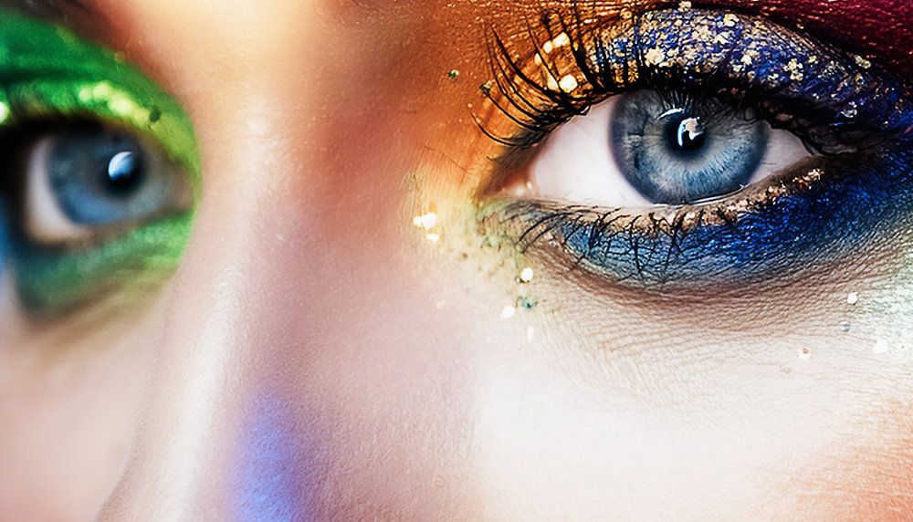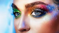Vrouwengezicht met verschillende kleuren op het gezicht