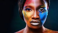 Vrouwengezicht met verschillende kleuren op het gezicht