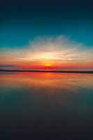 Zonsondergang tijdens afgaand tijd in Vrouwenpolder (Zeeland).