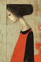 Details: vrouw, portret, schilderij, kunst, rood, zwart, textuur, stilte, elegantie, droom