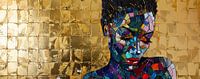 Details: vrouwenportret, goud, kleurrijk, mozaïek, modern, abstract, canvas, kunst, gezicht, schoonheid