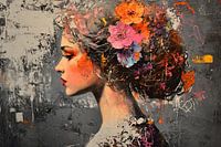 Koop dit bloemen kunstwerk Vrouwenportret | Silence in Colorful Bloom van Blikvanger Schilderijen op canvas, aluminium dibond, (ingelijste) fotoprint, behang en ArtFrame, op maat geprint in Fine-Art kwaliteit.