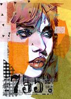 Vrouwenportret in stedelijke stijl. Originele illustratie in schets- en papiercollagetechniek