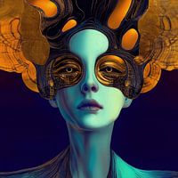 De gezichten in mijn werken zijn niet zomaar portretten; ze zijn portalen naar een wereld van dromen, mysteries en verhalen. Het gezicht van elke vrouw wordt omhuld door een weelderige hoofdtooi, een waar kunstwerk op zich, geïnspireerd door zowel traditionele als futuristische stijlen. Denk aan delicate bloemen, geometrische patronen, feërieke en spirituele symbolen die als het ware de persoonlijke energie en ziel van de figuur versterken. De hoofdtooien zijn opgebouwd uit levendige kleuren die in elkaar overgaan, met rijke tinten van blauw, paars, oranje, groen en goud, wat zorgt voor een magisch, bijna etherisch effect.
