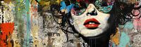 Details: vrouw, gezicht, rode lippen, graffiti, collage, abstract, surrealistisch, stedelijk, modern, kleurrijk