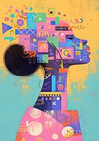 Details: vrouwenportret, abstract, kleurrijk, geometrisch, symbolisch, kunst, schilderij, moderne kunst, profiel, creativiteit