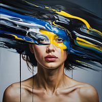 De levendige kleuren, met dynamische achtergronden en surrealistische elementen, plaatsen het portret in een nieuwe context en stimuleren de verbeelding.