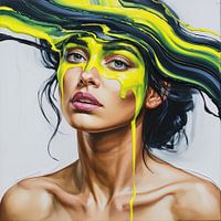 Het kunstwerk combineert de gebruikelijke technieken van realistische olieverfschilderijen met de moderne samenwerking van illustratie om een indrukwekkend portret te maken. Deze techniek combineert het rijke detail en de levendigheid van een realistisch portret met de creatieve mogelijkheden van digitale kunst.