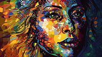 Vrouwprofiel, meetkundige vormen en zware kleuren