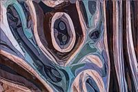 Lijnen en kleurvlakken van zacht groen, roze en paars met bruin en donker blauwpaars. De lijnen en kleurvlakken zijn gemaakt met reliëf (alleen zichtbaar bij 100 procent vergroting). In de grond zitten een aantal zaden die binnenkort gaan ontkiemen.