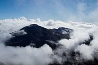 Tip van een vulkaan (Big Island) die uit de wolken kijkt.
