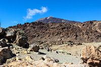 Landschap met vulkanisch gesteente en de Teide op de achtergrond op het Canarische eiland Tenerife. Genomen in november 2014.