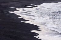 Een door vulkanische activiteit gezwart zandstrand nabij het plaatsje Vik aan IJsland's zuidkust.