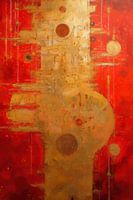 Dit werk toont een dynamische abstracte compositie waarin vurige rode tinten worden gecombineerd met subtiele, goudachtige structuren. De centrale vorm creëert een krachtige focus, terwijl de omliggende patronen en details een gevoel van diepte en textuur toevoegen. De levendige kleuren en intrigerende vormen roepen een gevoel van energie en intensiteit op, wat perfect past in een modern interieur dat een opvallend en expressief element nodig heeft. Dit werk biedt een boeiende balans tussen warmte en abstractie, waardoor het zowel visueel aantrekkelijk als emotioneel geladen is.