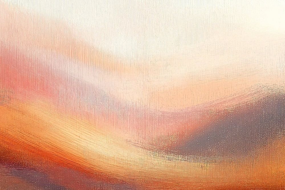 Dit abstracte landschap toont een betoverende bergvallei bij zonsondergang. Warme, vurige tinten contrasteren met koele blauwen, creërend een dramatisch en sereen tafereel. Vloeiende lijnen en zachte kleurovergangen suggereren een dromerige atmosfeer. Het werk roept rust en verwondering op, nodigt uit tot onderdompeling in natuurlijke schoonheid. Levendige kleuren en subtiele texturen weerspiegelen de rijkdom van het landschap, terwijl ze harmonie en balans oproepen.