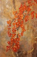 Dit werk vangt de vurige schoonheid van klimmende bloemen in een warme, aardse omgeving. De heldere, rode bloesems contrasteren prachtig met de zachtere tinten van de achtergrond, waardoor een gevoel van levendigheid en energie ontstaat. De texturen en details van de bloemen en de ranken voegen een tastbare dimensie toe aan het stuk, waardoor het bijna tot leven lijkt te komen. Dit kunstwerk straalt passie en dynamiek uit, perfect voor een interieur dat een statement wil maken. Het is ideaal voor ruimtes die behoefte hebben aan een vleugje kleur en natuurlijke elegantie.