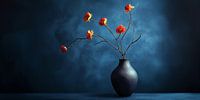 Dit kunstwerk roept een diep gevoel van contemplatie en hoop op. De levendige rode bloesems, die als vurige lichtpunten tegen de mysterieuze, donkerblauwe achtergrond afsteken, symboliseren veerkracht en levendigheid te midden van uitdagende omstandigheden. In de context van eenzaamheid en introspectie biedt het beeld troost en inspiratie. De minimalistische compositie nodigt uit tot reflectie over de kracht van subtiele schoonheid en de mogelijkheid van groei, zelfs in schijnbaar onvruchtbare omgevingen. Het werk wekt emoties op van melancholie gemengd met een gevoel van stille vastberadenheid, wat leidt tot een diep gevoel van innerlijke kracht en waardering voor de onverwachte momenten van schoonheid in het leven.